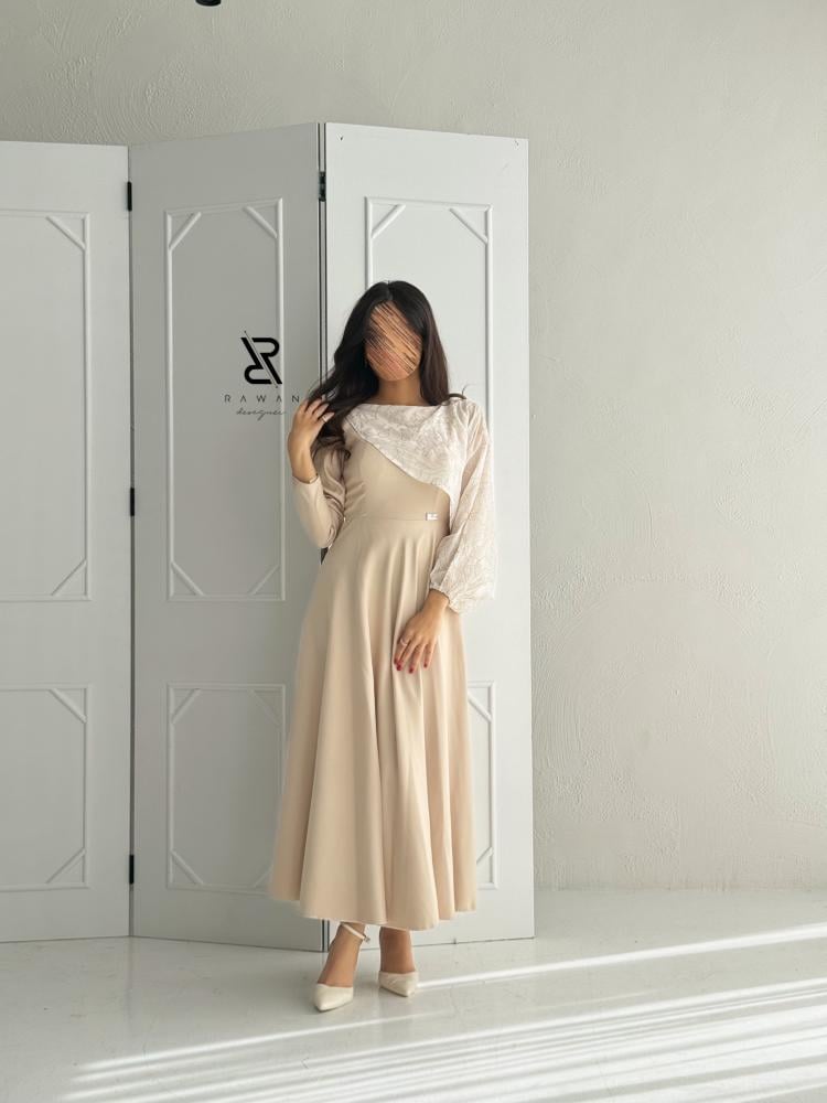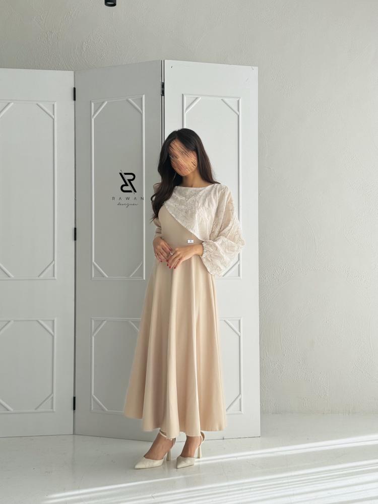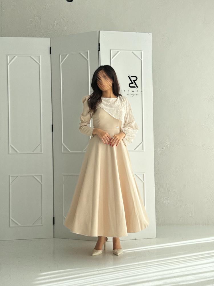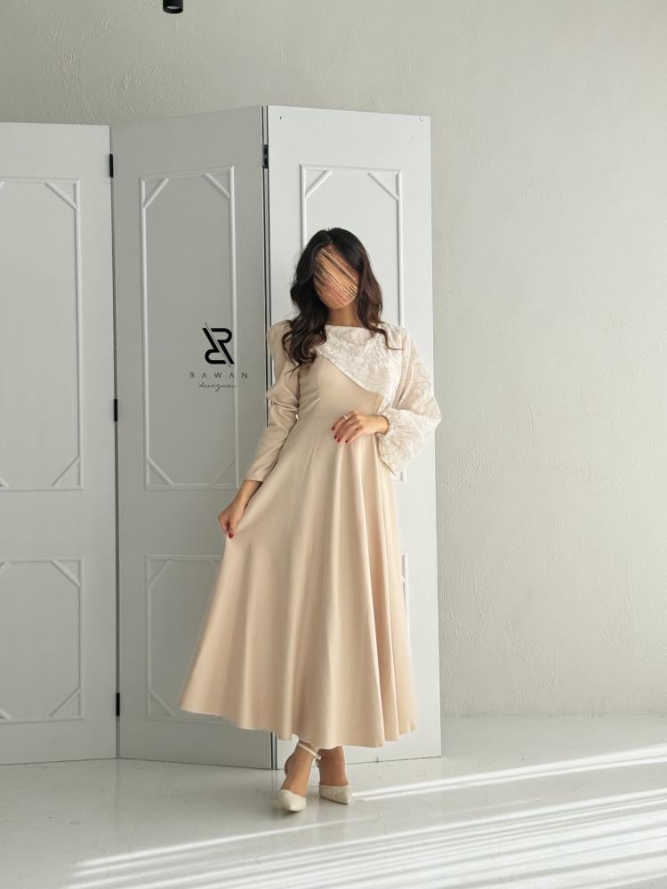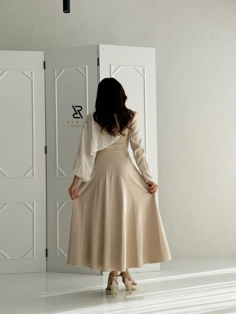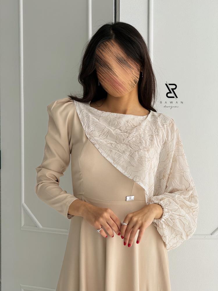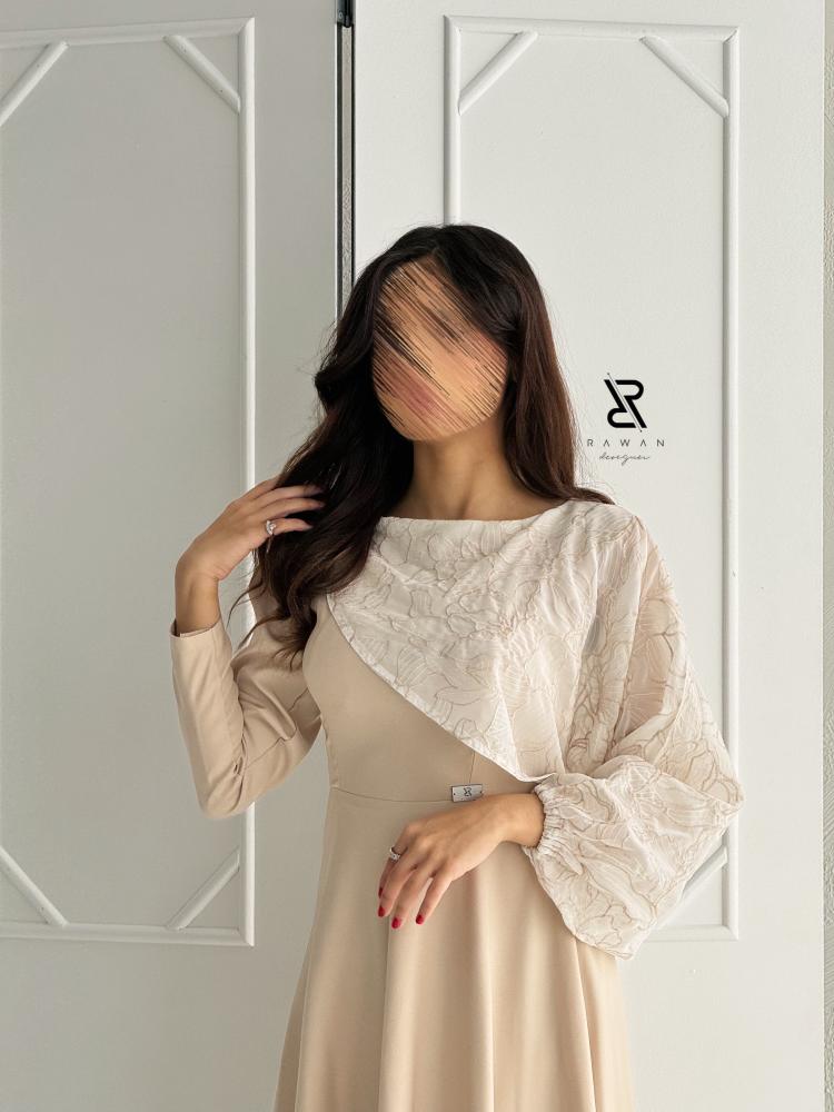 فستان ناعم وانيق صنع الفستان من قماش التفته المطفي بتفاصيل قصه مميزه وجميله بـ خامه الشيفون