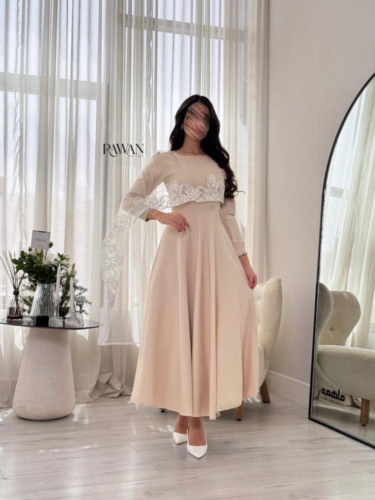 فستان فخم وانيق صنع الفستان من قماش التفته المطفي والتل بتفاصيل شك بالاطراف