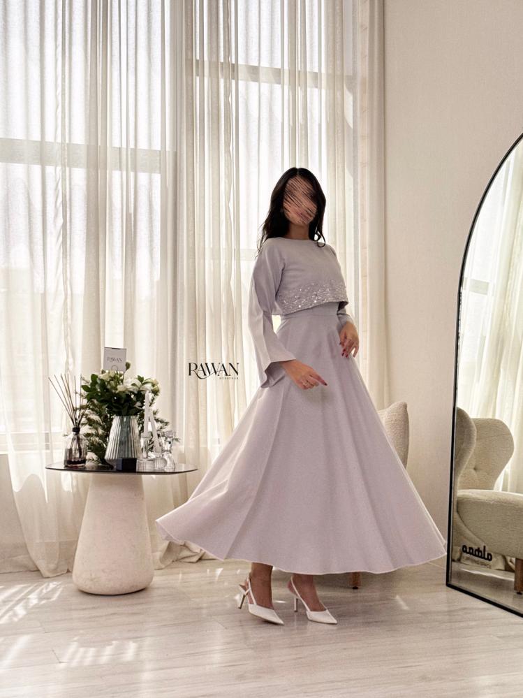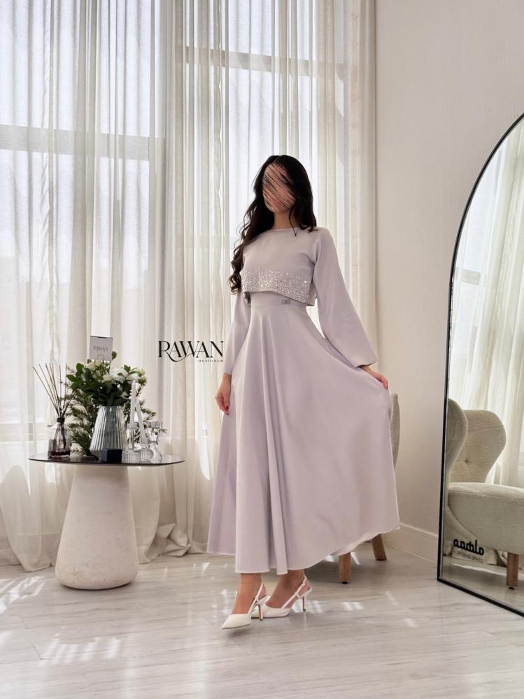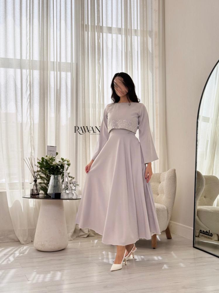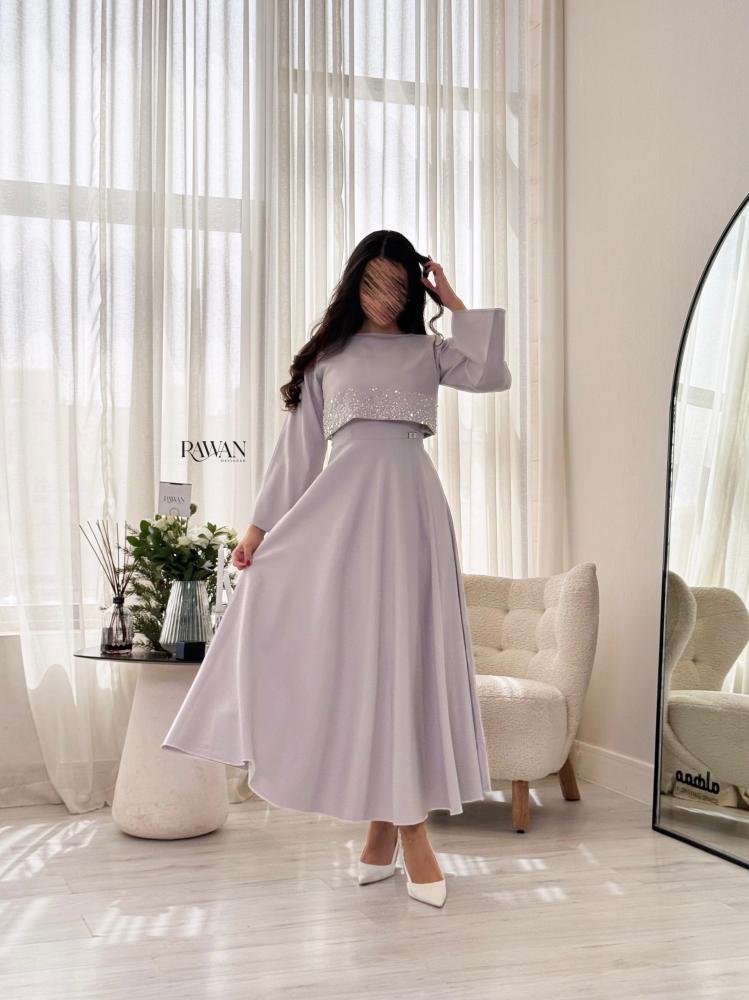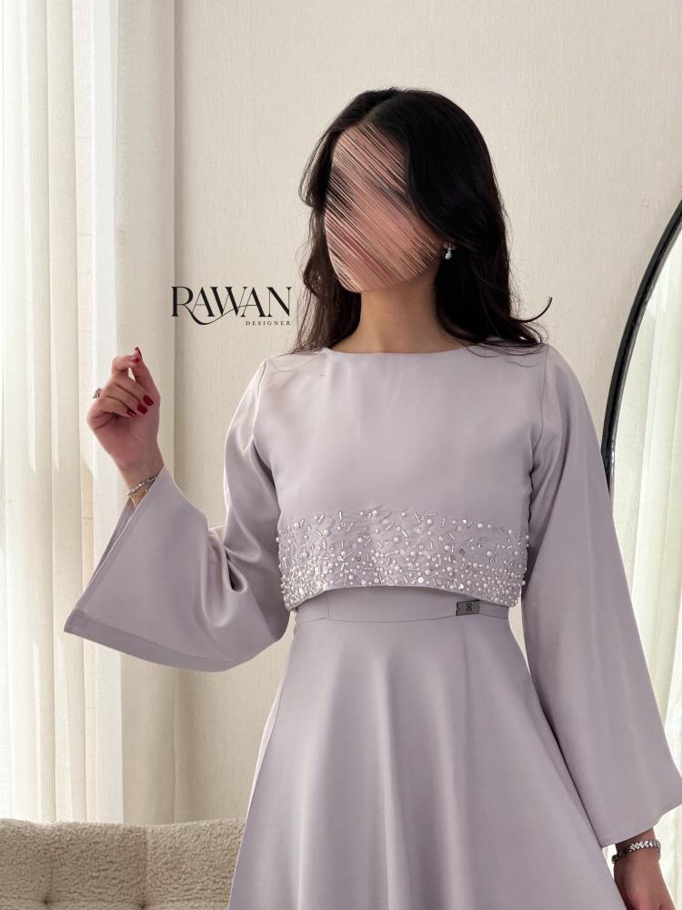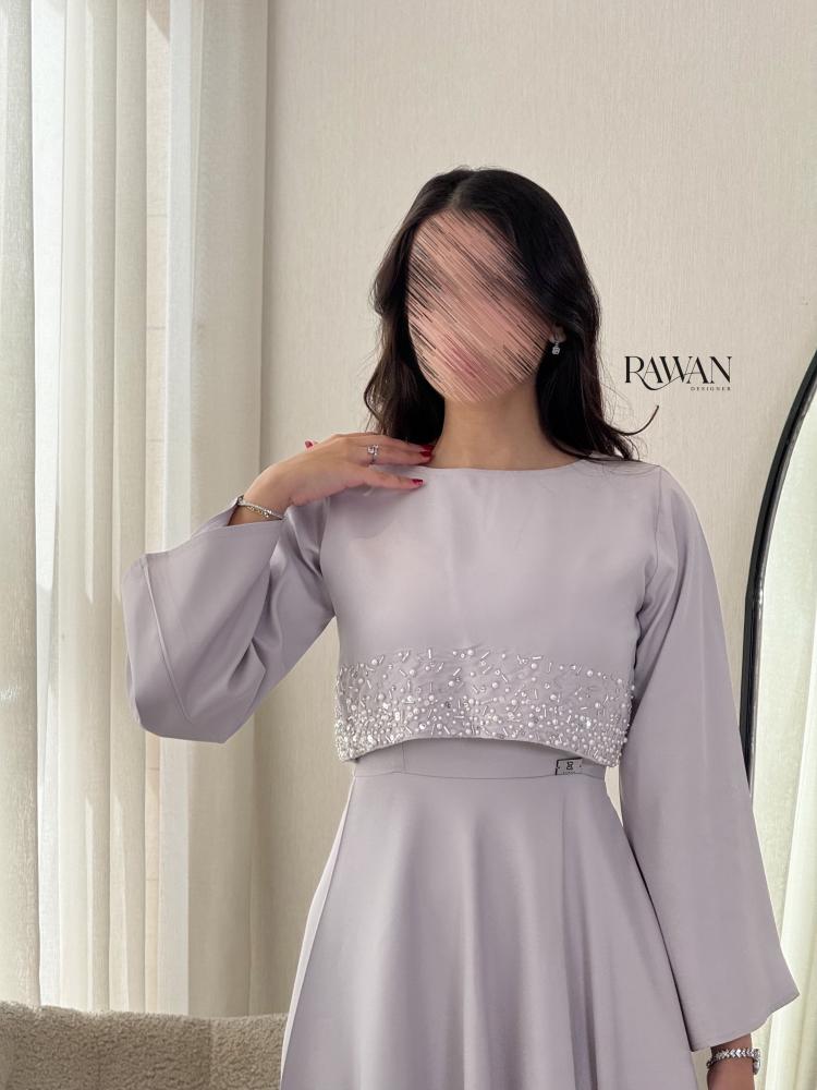 فستان فخم وانيق صنع الفستان من قماش التفته المطفي بتفاصيل شك مميز بالصدريه
